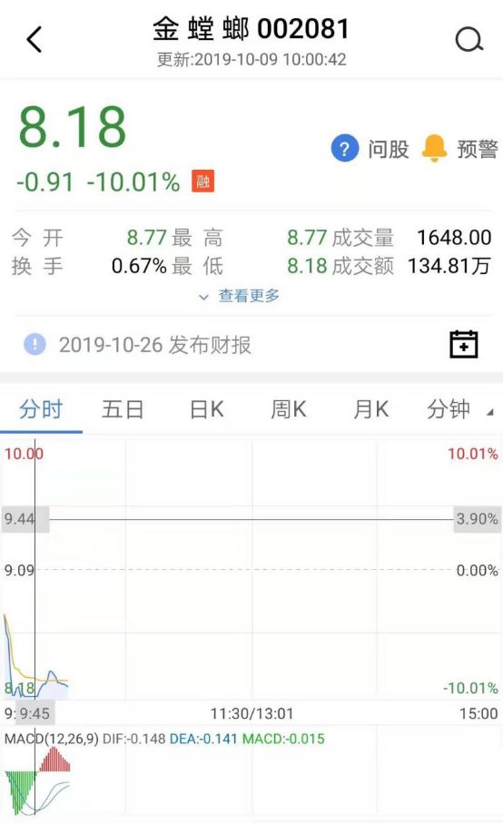 受此消息影响,金螳螂开盘之后快速下跌,盘中一度跌停。