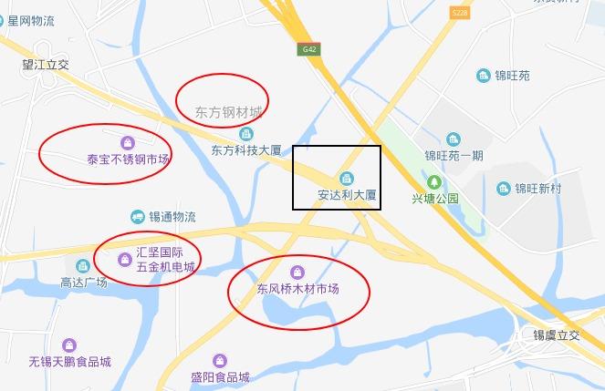 (黑色方框是本次桥梁侧翻的位置,周围至少有4个专业批发市场)