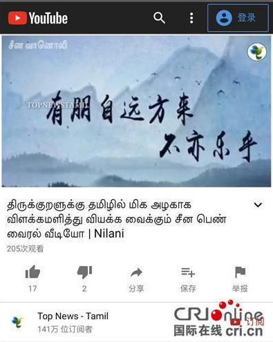 △YOUTUBE上拥有140万粉丝的“泰米尔要闻”主页播出《平“语”近人》