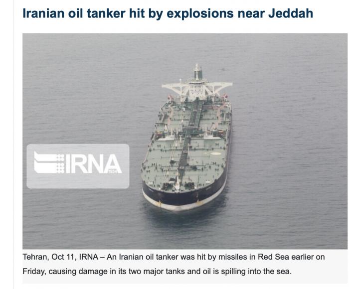 中东局势又现紧张,国际油价短时“狂飙”。当地时间10月11日上午,伊朗官媒伊朗伊斯兰共和国通讯社(IRNA)报道,据伊朗国家石油公司称,属于该公司的名为SABITY的大油轮在红海遭导弹袭击,导致船上的两大主要油罐遭到损坏,目前原油已在海中扩散。该公司称,油轮在距离沙特港口城市吉达60公里处遭到导弹袭击。
