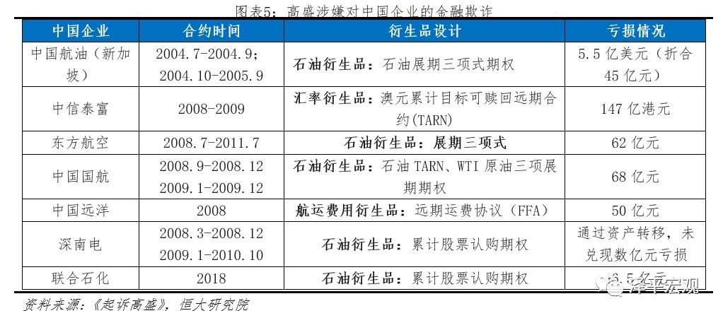 历史上没有一家中国的受损企业去起诉同他们交易的国际投行并获得成功,此外双方交易的合约文本并未完整披露,高盛是否有欺诈行为目前存疑。但我们应当以史为鉴,一方面,中国企业国际贸易发展迅猛,对价格波动的套保需求不断增长;另一方面,国内券商衍生品业务发展较为缓慢,估值定价能力不足,我国标准化原油衍生品直到2018年才推出,场外衍生品发展滞后。因而我国企业在同国际投行进行套保交易时多依赖对方提供的衍生品设计合约以及估值定价,受损可能性较高。