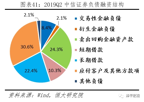 二是国内券商加杠杆受限,ROE增长有所放缓。2016年证监会修改《证券公司风险控制指标管理办法》,执行“核心净资本/表内外资产总额≥8%”的规定,结合文件发布时 “财务杠杆率约为6倍” 的表述,当前我国券商经营杠杆的上限大约为6倍;而在保证金三方存管制度下,理论杠杆空间降至5.13倍。事实上,中信证券2019H1的权益乘数仅为4.53倍,同期高盛的权益乘数是中信证券的2.3倍。ROE的驱动因素方面,美国投行以杠杆驱动为主,而我国券商以资产周转率和净利率驱动为主。建议尽快落实建立2019年7月发布的《证券公司股权管理规定》中的券商分类监管框架。综合类券商逐步从轻资产业务过渡到重资产业务,具有显著的杠杆特征,在分类监管的框架下打开风控能力较强的综合类券商加杠杆的空间。三是国内券商担保融资渠道受限。美国投行可以使用客户保证金作为抵押品进行负债融资,而我国《证券公司融资融券业务管理办法》中明确规定,证券公司客户交易结算资金采用第三方存管模式,券商不得违规挪用客户担保物,此项目是中美券商负债融资渠道结构中最关键的差异所在,2019年上半年,该负债项目在中信证券的融资结构中占比高达30.6%,其中客户交易结算金达1224亿元,大量资金沉淀无法得到利用。融资融券也是中美券商差异较大的项目,在中信证券的负债结构中,2018年末该项负债为30亿元,占总负债比重0.6%。建议监管放宽券商融资渠道的限制,例如适当对证券公司的融资融券业务松绑,提升两融余额上限、鼓励证券公司金融债,盘活客户保证金等。