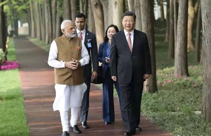 2018年,中印领导人第一次非正式会晤期间,中国国家主席习近平与印度总理莫迪在武汉东湖边散步交流。(图/新华社)