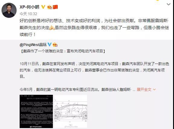 而国内造车新势力小鹏汽车董事长表示,这条路走得很艰难,非常佩服詹姆斯·戴森先生的决定!