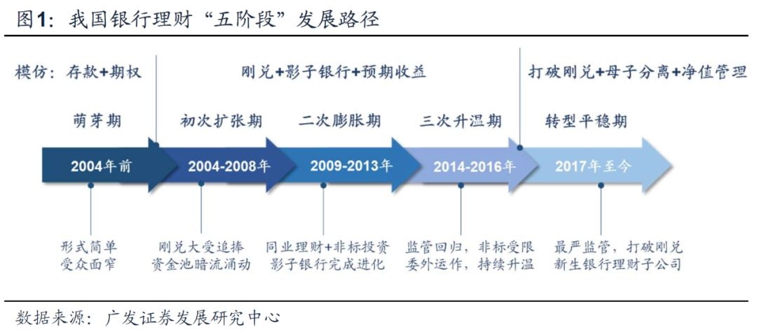 1.1 银行理财历史“五阶段”回顾:理财子迎净值化时代