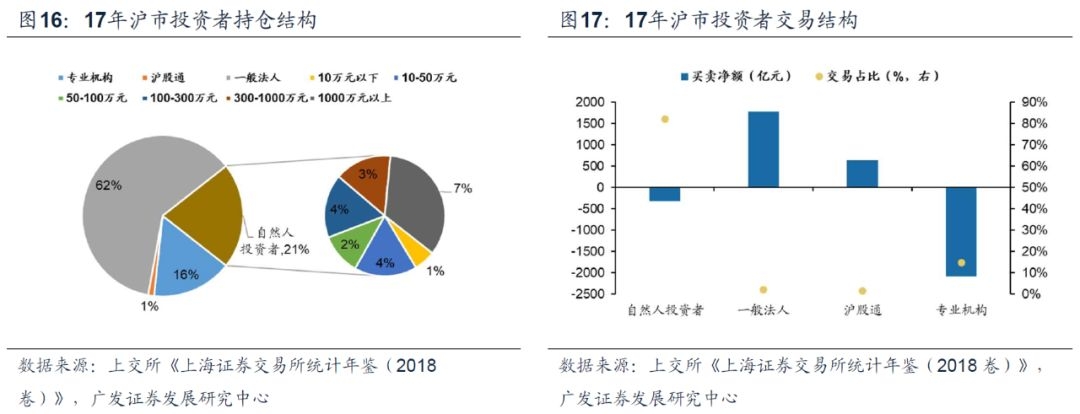 与海外成熟市场相比,我国资本市场机构参与者偏少,在一定程度上影响了资本市场的功能发挥与健康发展。根据上交所统计,17年沪市个人投资者持仓占比仅为21%,但交易占比达82%,市场“散户化”特点突出。未来银行理财子公司将进一步加大对权益市场配置,以稳健的投资风格引导市场走向理性成熟。
