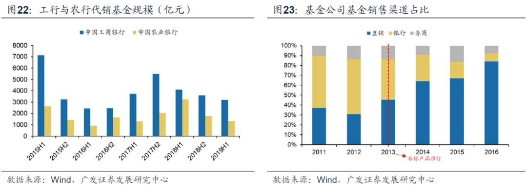 银行代销一直是基金产品销售的重要渠道。自2013年银行非标产品的推行,国内众多银行代销基金在销售结构中的占比呈现下降趋势,公募基金逐渐转向第三方平台和直销,银行代销占比从13年41.12%降至16年8.15%。随着银行理财子公司推广,银行理财产品以自销形式销售,代销基金规模将进一步减小,对于银行代销渠道依赖性较高的公募基金会产生一定销售压力。