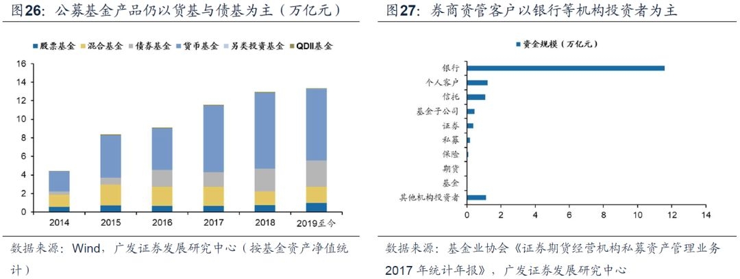 券商资管投研体系成熟,与其投行、财富管理业务具有明显协同优势:1)从资产端来看,券商资管可通过投行产业链获取项目资源,如科创板实行保荐跟投制度带来增量资管业务;2)从资金端来看,券商网点资源丰富,通过财富管理条线向资管业务导流,17年个人客户占比仅为7.6%,说明客群整体风险偏好较高。