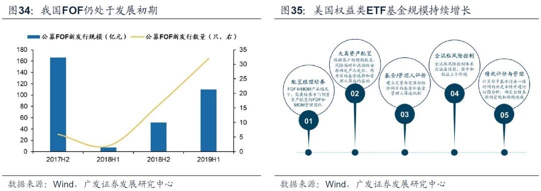 ETF作为指数化投资工具,具有透明性高、费率低的特点,在市场稳定性和有效性不断提高的背景下,符合个人类低风险偏好为主的银行理财客户需求,也可能是银行理财子公司初期委外FOF主要形式,公募基金正加快并扩大权益类ETF产品布局,与先天强固收的银行理财子公司形成优势互补,提升大类资产配置收益率。