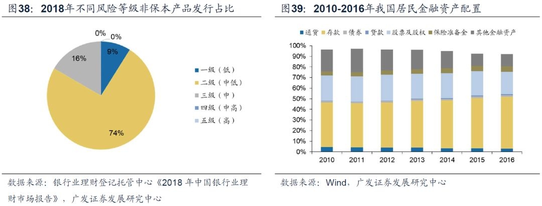 考虑到银行母行在固收领域的投资优势,并且固收类、低波动产品更能契合银行理财主要客群的低风险偏好,加之我国居民金融资产配置比率低且以存款为主,我们认为,初期固收类产品将成为理财子公司规模的“稳定器”。但在刚兑破除下,较低收益的现金管理类资产吸引力降低,固收类资产中债券配置比例将继续提高。
