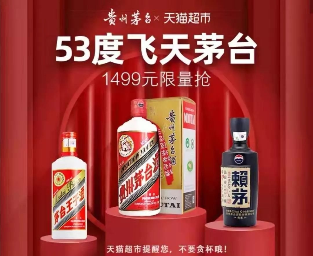 根据天猫超市销售规则,10月1日起、每天10时和22时,500ml装53度飞天茅台以1499元/瓶的价格限量投放。