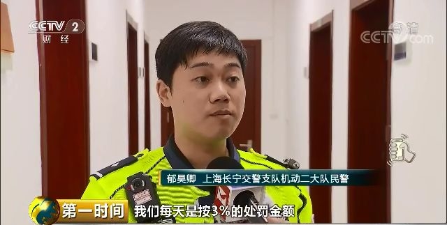 上海长宁交警支队机动二大队民警 郁昊卿:逾期未缴款的话,我们每天是按照3%的处罚金额,进行追加处罚。