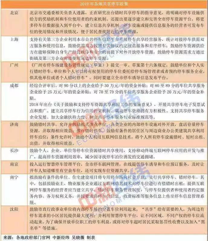此外,为了提高供需双方积极性,北京还将将明确对停车设施供给方的奖励机制和车位使用者的约束机制。成都在8月还提出了对车位共享服务企业实行按分数段给予资金补贴的办法。