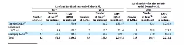二,在IPO时,如涵的全业务关键意见领袖(Key opinion leaders, KOL,指如涵签约的网红)数量下降了近44%;