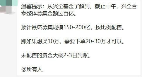 两小时募集120亿!兴全合泰发售半日已触发比例配售