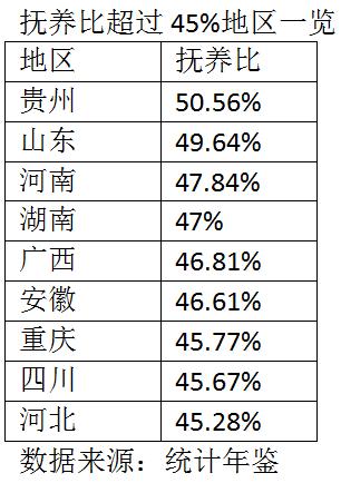 全国已有9地的抚养比超过45%。