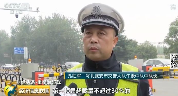 河北武安市交警大队午汲中队中队长 孔红军:处罚标准共分四项。第一项是超载量不超过30%的,记3分罚300元;第二种是超过30%不超过50%的,是记6分罚500元;第三种是超50%以上100%以下的,记6分罚1000元;第四种是超过100%以上的,是罚1500元记6分。
