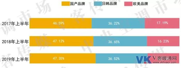 尽管市场下行压力大,且小规模品牌市场生存空间受到进一步压缩,但中央空调行业品牌集中度依然在进一步提升。国产品牌方面,美的、格力、海尔“三驾马车”在国产品牌阵营中一直位于标杆地位。无论是从产品开发、市场投入乃至渠道网络覆盖等方面,三大品牌均在国产品牌阵营中保持前列。