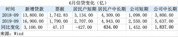 9月新增信贷规模主要靠企业中长期贷款拉动。当月企业中长期贷款5600亿,年内新增规模仅次于1月和3月,约占同期新增信贷的三分之一,是占比最大的一项。