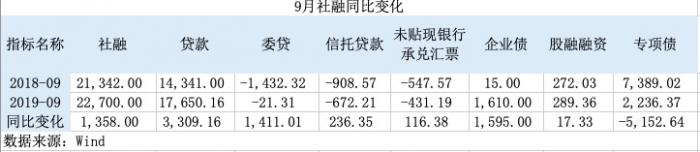 2019年9月起,人民银行进一步完善“社会融资规模”中的“企业债券”统计,将“交易所企业资产支持证券”纳入“企业债券”指标。同比来看,调整后“企业债券”项基数回落,当期走高,对社融有正向影响。