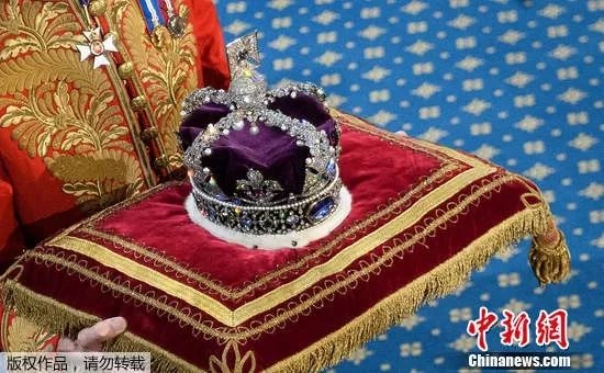 值得注意的是,女王并没有按照传统,戴上重约1.28公斤的帝国王冠,而是改戴了一个小型王冠。