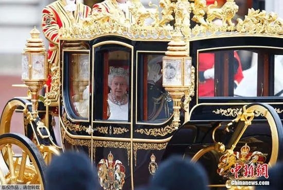 △资料图:2014年6月4日,英国女王乘坐全新御用马车参加议会开幕典礼。