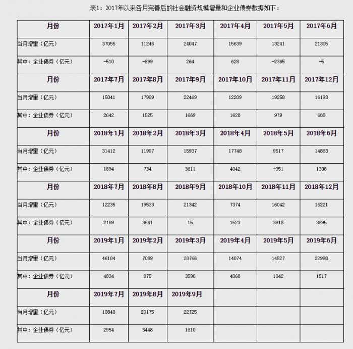 10月15日,央行公告,自2019年9月起,央行进一步完善“社会融资规模”中的“企业债券”统计,将“交易所企业资产支持证券”(简称企业ABS)纳入“企业债券”指标。