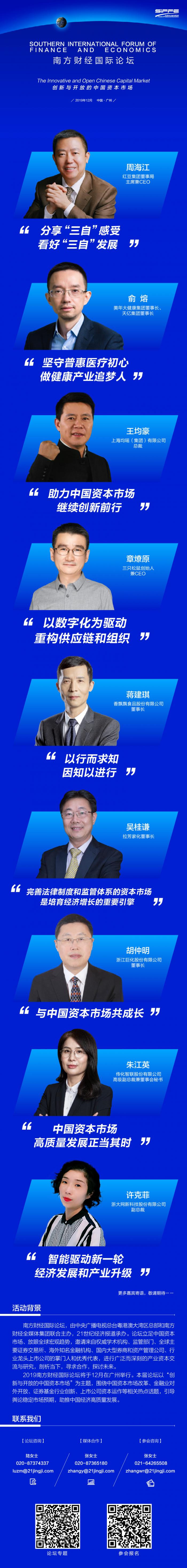 2019南方财经国际论坛将于12月在广州举行。本届论坛以“创新与开放的中国资本市场”为主题,围绕中国资本市场改革、金融业对外开放、证券基金行业创新、上市公司资本运作等相关热点话题,引导舆论稳定市场预期,助推中国经济高质量发展。