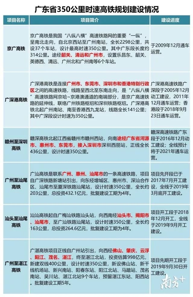 ★在建350公里时速高铁有赣州至深圳高铁、广州至汕尾高铁、汕尾至汕头高铁、广州至湛江高铁;
