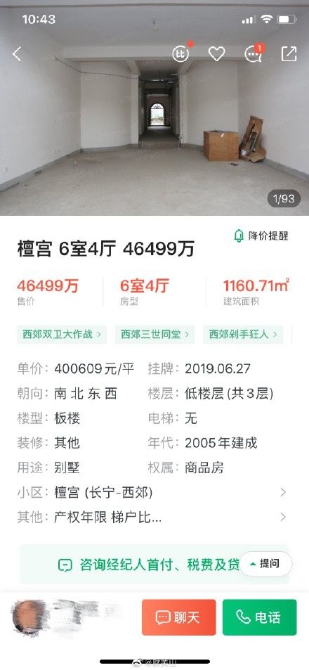 不过,微博上还有中介称檀宫一套报价4.1亿的别墅业主直降5000万。还有微博爆料称,该套豪宅前面就挂牌4亿出售,两年无人问津,近期业主大幅降价,依然无人接盘。
