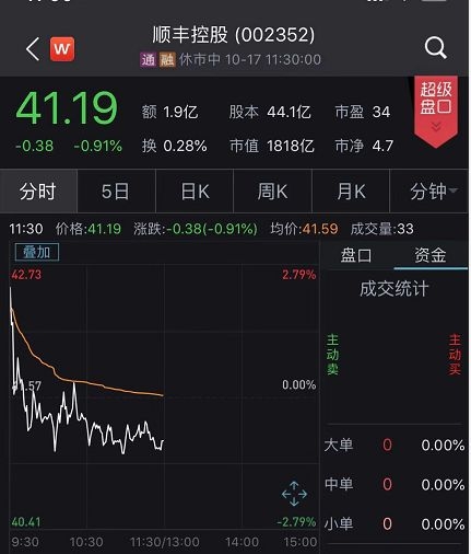 或许受此影响,顺丰今天上午的股价下挫近1%。