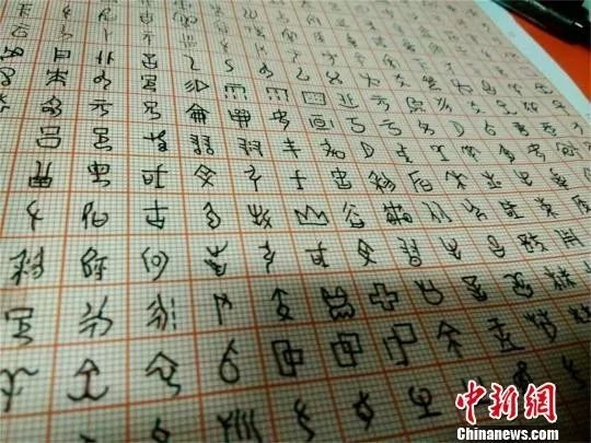 资料图:武汉一高校教师采用甲骨文教学,图为学生临摹甲骨文的作业。王文 摄图上这些甲骨文,你都认识它们是什么意思吗?
