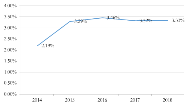 上市前后的数据让我们更好看到上市对于税收的带动——据统计,以首发上市为时间节点,企业上市(A股)后一年的所得税费用,较上市前一年增长约53%。2014至2018年,企业上市、挂牌意愿强烈、增速较快,上市、新三板挂牌公司所得税占广州财政收入的比例呈稳中有升态势,从2.19%增长至3.33%。