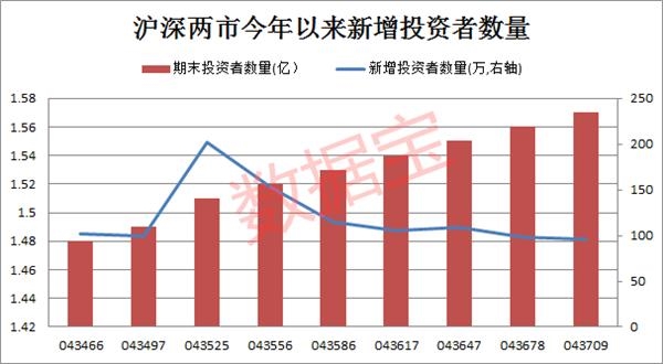 昨日晚间,中登公司公布了9月份沪深两市新增投资者数量。数据显示,9月份新增投资者96.28万,期末投资者数量1.57亿。