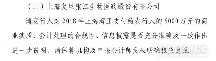 复旦张江的回复是,根据《市场推广服务协议》约定,由于变更推广服务商将导致标的产品市场切换产生一系列费用,上海辉正同意向发行人支付一笔不可返还的商业补偿金,金额为人民币5000万元,作为上海辉正获取独家推广服务权利的条件。