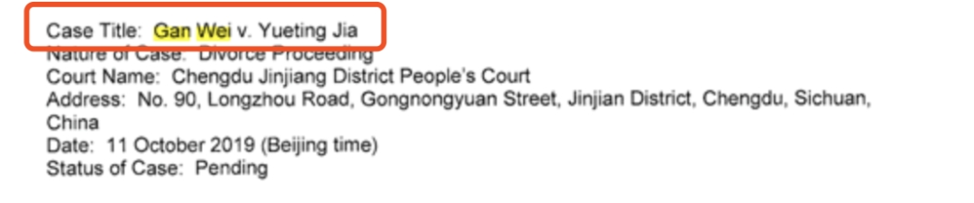 10月20日,每日经济新闻(微信号:nbdnews)记者又从上述网站披露的最新文件中发现,贾跃亭和其妻子甘薇于今年10月11日在成都市锦江区人民法院申请离婚,该案状态显示为审理中。