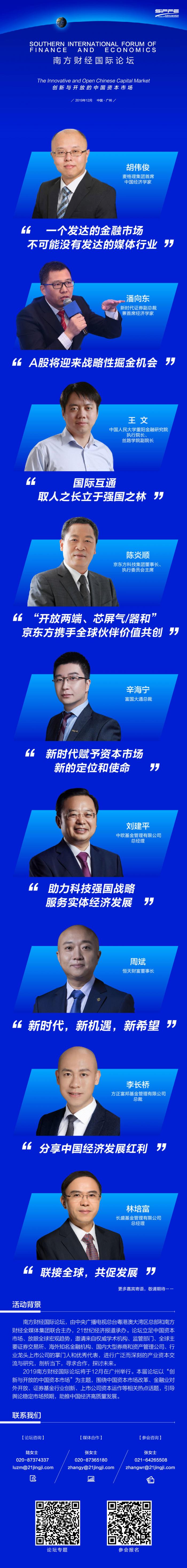 导读:由中央广播电视总台粤港澳大湾区总部、南方财经全媒体集团联合主办,21世纪经济报道承办,2019南方财经国际论坛12月将在广州隆重举行。围绕论坛主题“创新与开放的中国资本市场”,麦格理集团胡伟俊,新时代证券潘向东,人民大学王文,京东方陈炎顺,富国大通辛海宁,中欧基金刘建平,恒天财富周斌,方正富邦基金李长桥,长盛基金林培富等,陆续为论坛发来寄语。