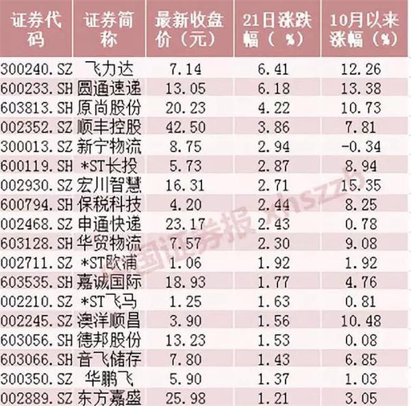 首先是快递板块。从2016年我国快递企业相继登陆A股之后,每每临近双11,快递股连带着物流板块都有不同程度表现,今年也不例外。