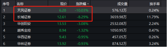 巨量解禁压顶带来的压力仍在继续。在昨日因超百亿天量解禁致股价一字跌停之后,天风证券今日股价仍被牢牢钉在跌停板上,这已经是其连续两天股价出现跌停。不仅仅是天风证券,另一次新股长城证券将在下周迎来解禁,而且解禁的市值更是远超天风证券,在今日券商股表现中,长城证券股价跌幅仅次于天风证券,截至收盘,长城证券股价报收12.61元/股,跌幅高达8.29%。