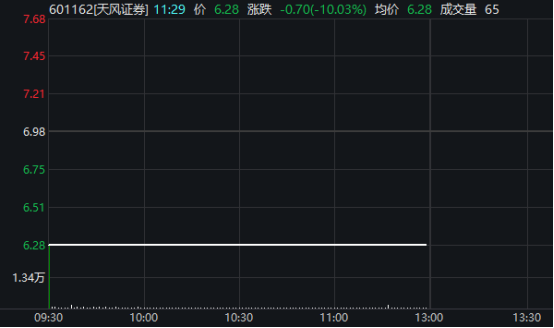 解禁带来的股价压力仍在持续,今日上午开盘,天风证券延续昨日“跌停模式”,截至上午收盘,天风证券股价报收6.28元,创下半年来的新低,跌停板上封单逾80万手。