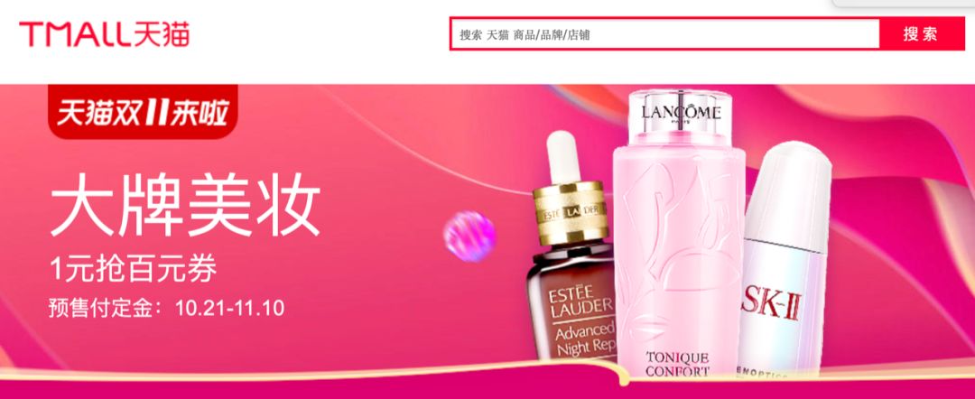 每日经济新闻记者注意到,根据有关数据,天猫零点预售开启后,数百品牌预售很快打破了去年“双11”峰值,实现天猫“双11”开门红。其中在化妆品方面,预售开启10分钟内,雅诗兰黛、兰蔻、欧莱雅、资生堂、HR赫莲娜、Olay、后等7家美妆大牌的成交额超过1亿元。其中雅诗兰黛小棕瓶眼霜预售了40万套,36分钟就全部售罄,单品的成交额突破2亿元。