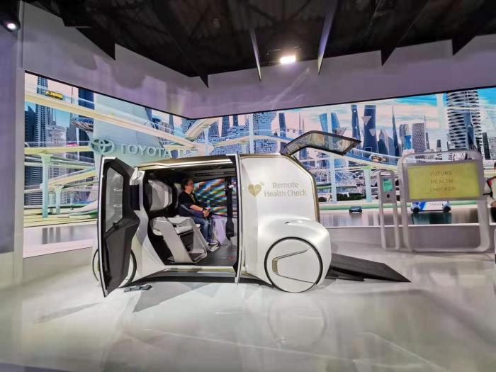 当你走到丰田汽车略显空旷的展台,很难想象这是一个车企为车展布置的展车。你看不到一辆丰田在售的汽车,只能看到几个极具未来感的虚拟座舱、一些游戏设备和生活用品的商铺......这是一个“体验型”的展位,也是未来的游乐场,淋漓尽致地展现了丰田对于未来出行的大胆畅想。