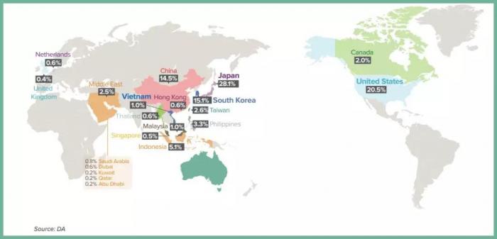 全球澳大利亚牛肉出口目的地(国家和地区)