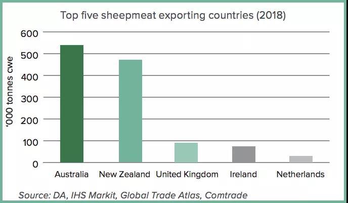 2018年,澳大利亚生产的牛肉65%用于出口,绵羊肉、山羊肉出口占比分别是73%、90%,出口总价值超过135亿澳元,澳大利亚成为全球出口牛羊肉价值最大的国家。