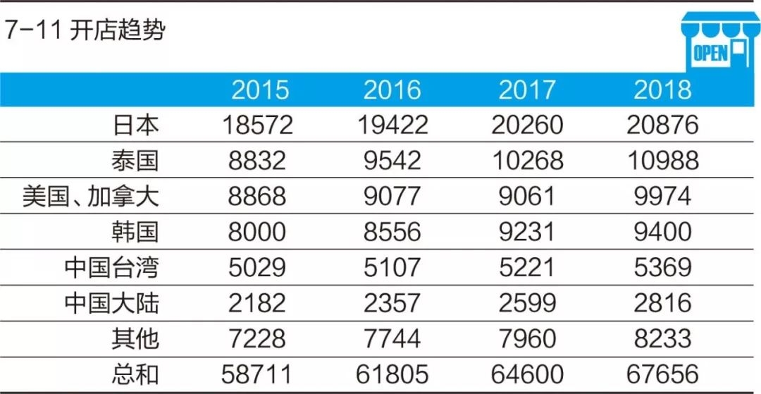 根据Seven&I Holdings的改革方案,为实现7-11国际市场的进一步增长,按规划,至2020年2月底,7-11在全球范围内的门店数将扩张至7万家。