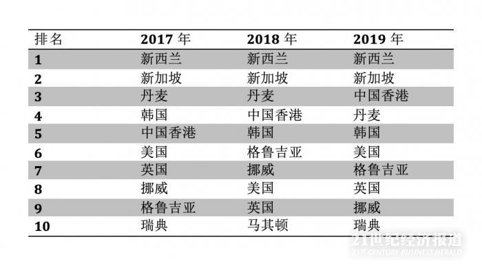世界银行今年排名前10的经济体中,不乏大国的身影,像美国、英国排名第6、8位,但更多的是一些小经济体,排名前三的经济体分别为新西兰、新加坡、中国香港。