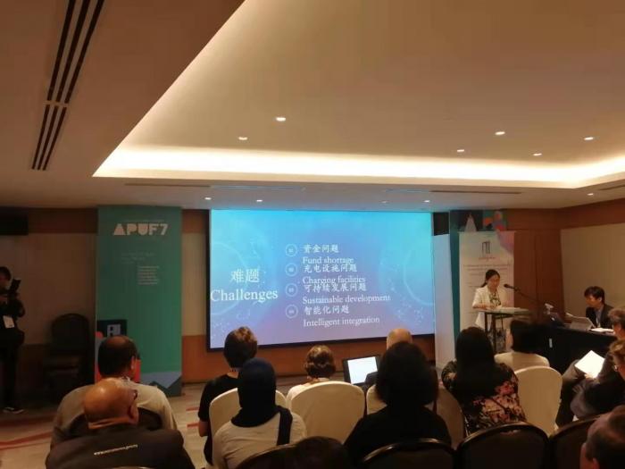 (图说:广州市交通运输局总工程师沈颖分享“广州公交电动化”案例)