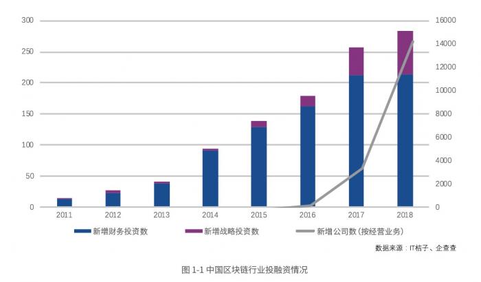 对于区块链的投资额也呈现稳步增长,从早期以财务投资为主到战略投资占比逐渐增加,从2015年低于10%增长到2018年的24.38%。