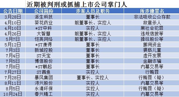 实际上,据不完全统计,从今年以来,已经有超过15位实控人、董事长爆出被捕的消息,让A股市场着实上演了“监狱风云”的连续剧。