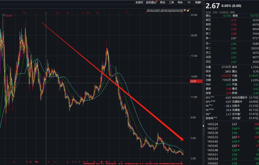 从2015年6月股价最高23.19元(复权),到今日收盘的2.67元,恺英网络股价暴跌了近90%,市值更是蒸发了超400亿元。
